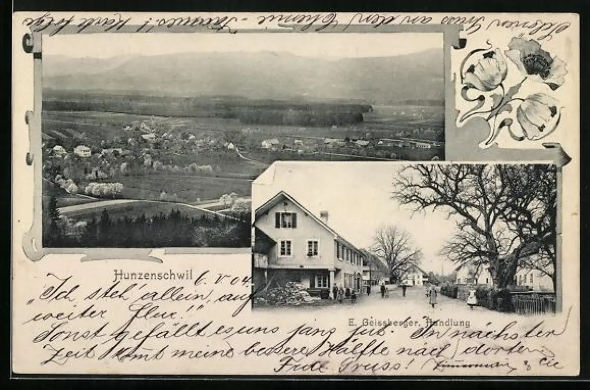 AK Hunzenschwil, Handlung E. Geissberger, Ortsansicht aus der Vogelschau