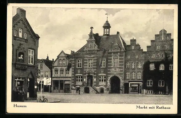 AK Husum, Markt mit Rathaus