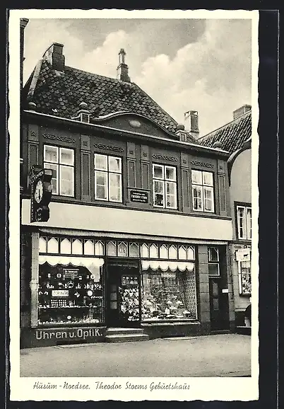 AK Husum / Nordsee, Uhren- und Optik-Geschäft in Theodor Storms Geburtshaus