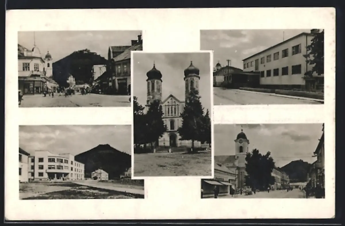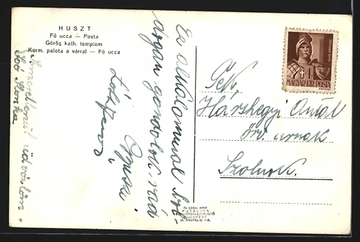 AK Huszt, Fa ucca, Posta, Görög kath. templom
