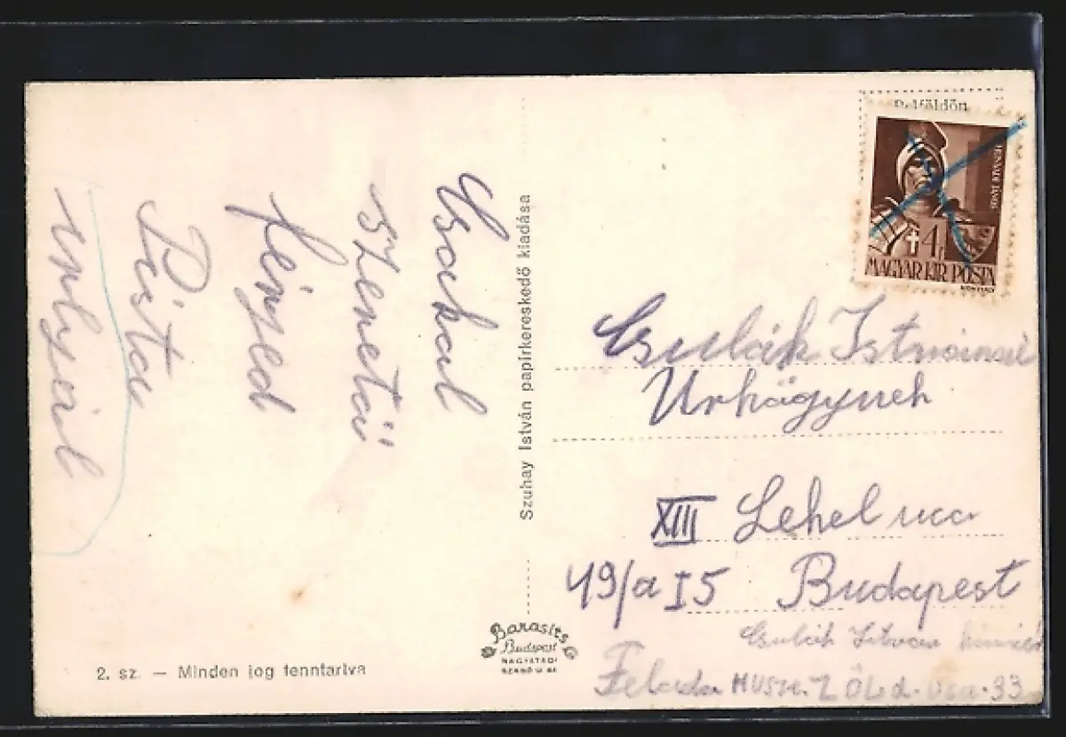 Personenbezogene Daten auf der Rückseite der Karte wurden durch blauen Textmarker unkenntlich gemacht. Die blauen Stellen sind auf die Vorderseite durchgeweicht und wirken sich negativ auf das Postkartenfoto aus