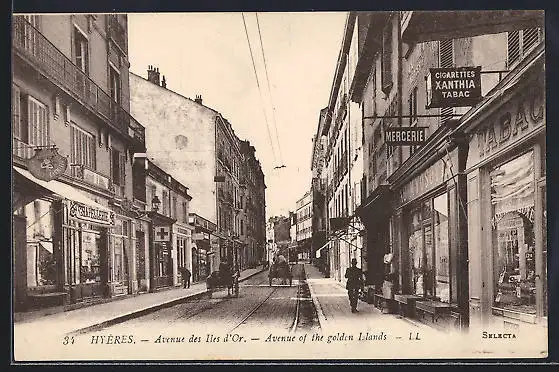 AK Hyères, Avenue des Îles d`Or avec commerces et passants