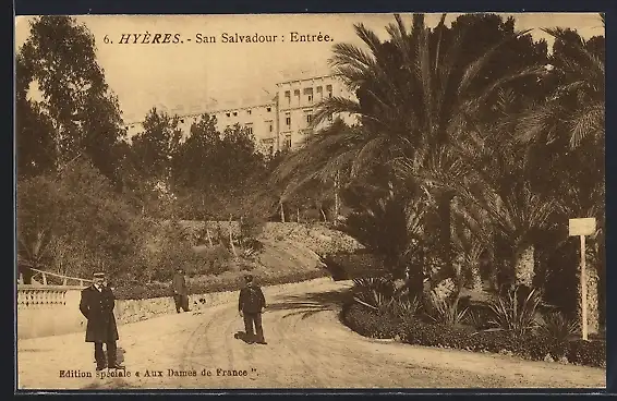 AK Hyères, Entrée de San Salvadour avec palmiers et passants