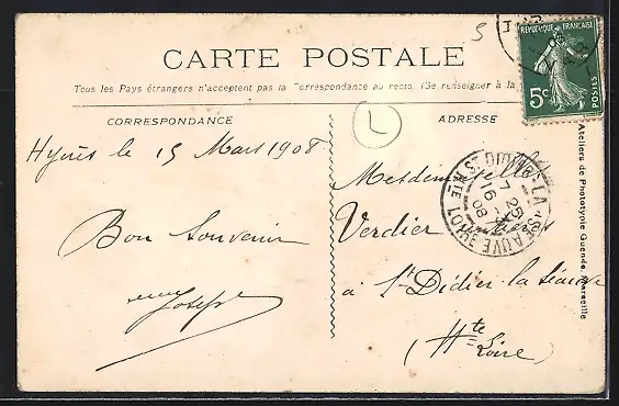 alte Ansichtskarte, gelaufen 1908, guter Zustand