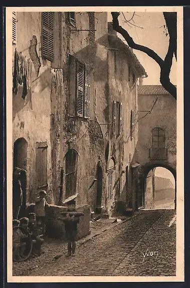 AK Hyères, Le Vieux Quartier avec enfants dans une rue pavée