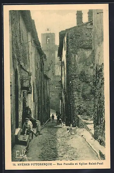 AK Hyères, Rue Paradis et Église Saint-Paul