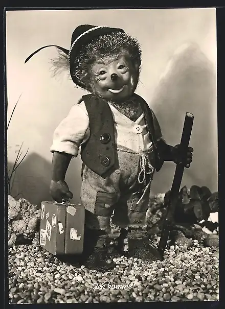 AK Ich komme!, Mecki mit Koffer in den Bergen