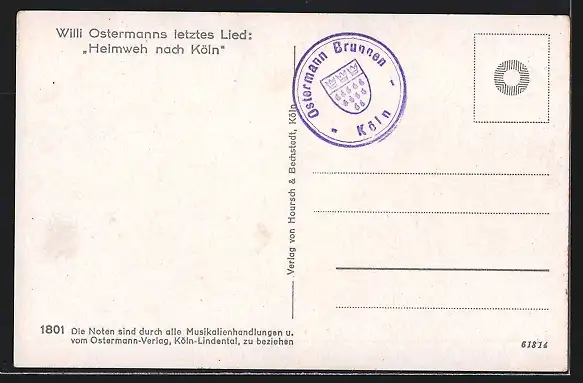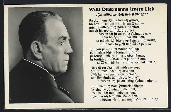 AK Ich mööch zu Foss noh Kölle gon, Willi Ostermann letrztes Lied
