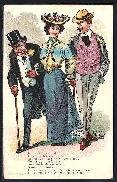 AK Ich sei, gewährt mir die Bitte, in Eurem Bunde der Dritte!, Scherz