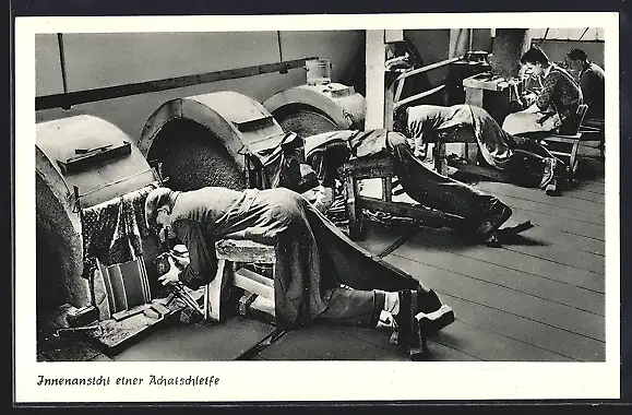 AK Idar-Oberstein, Innenansicht einer Achatschleife, Edelsteinbearbeitung