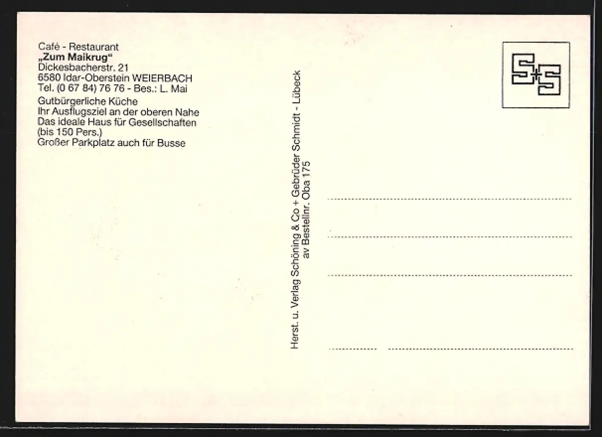 AK Idar-Oberstein, Weierbach, Café-Restaurant Zum Maikrug, Dickesbacherstrasse 21