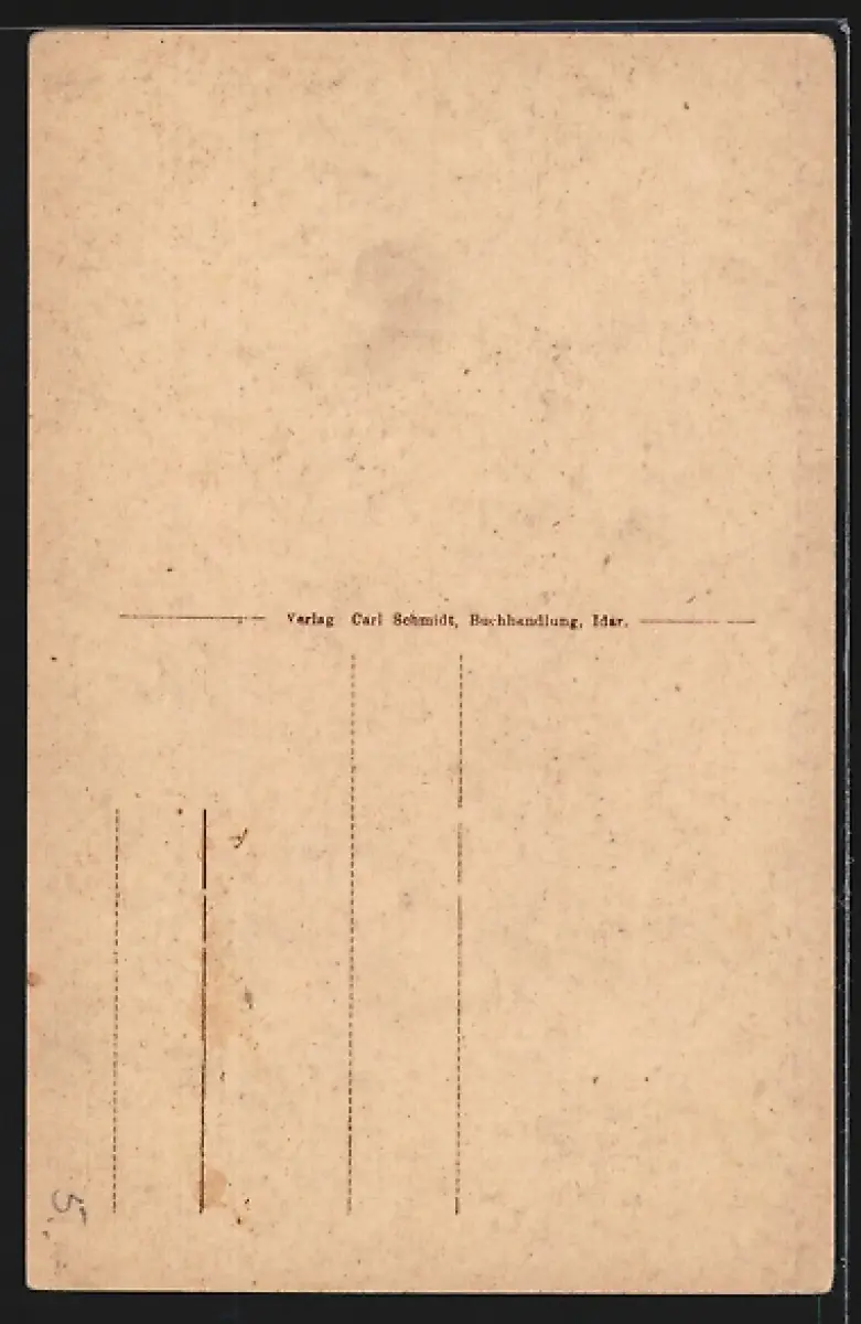 Personenbezogene Daten auf der Rückseite der Karte wurden durch blauen Textmarker unkenntlich gemacht. Die blauen Stellen sind auf die Vorderseite durchgeweicht und wirken sich negativ auf das Postkartenfoto aus