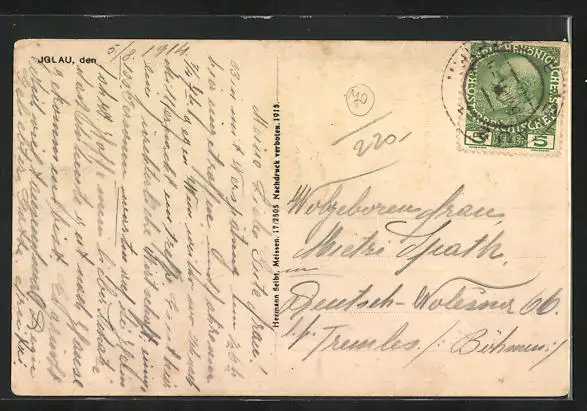 gelaufen 1914, Stempelspur, guter Zustand