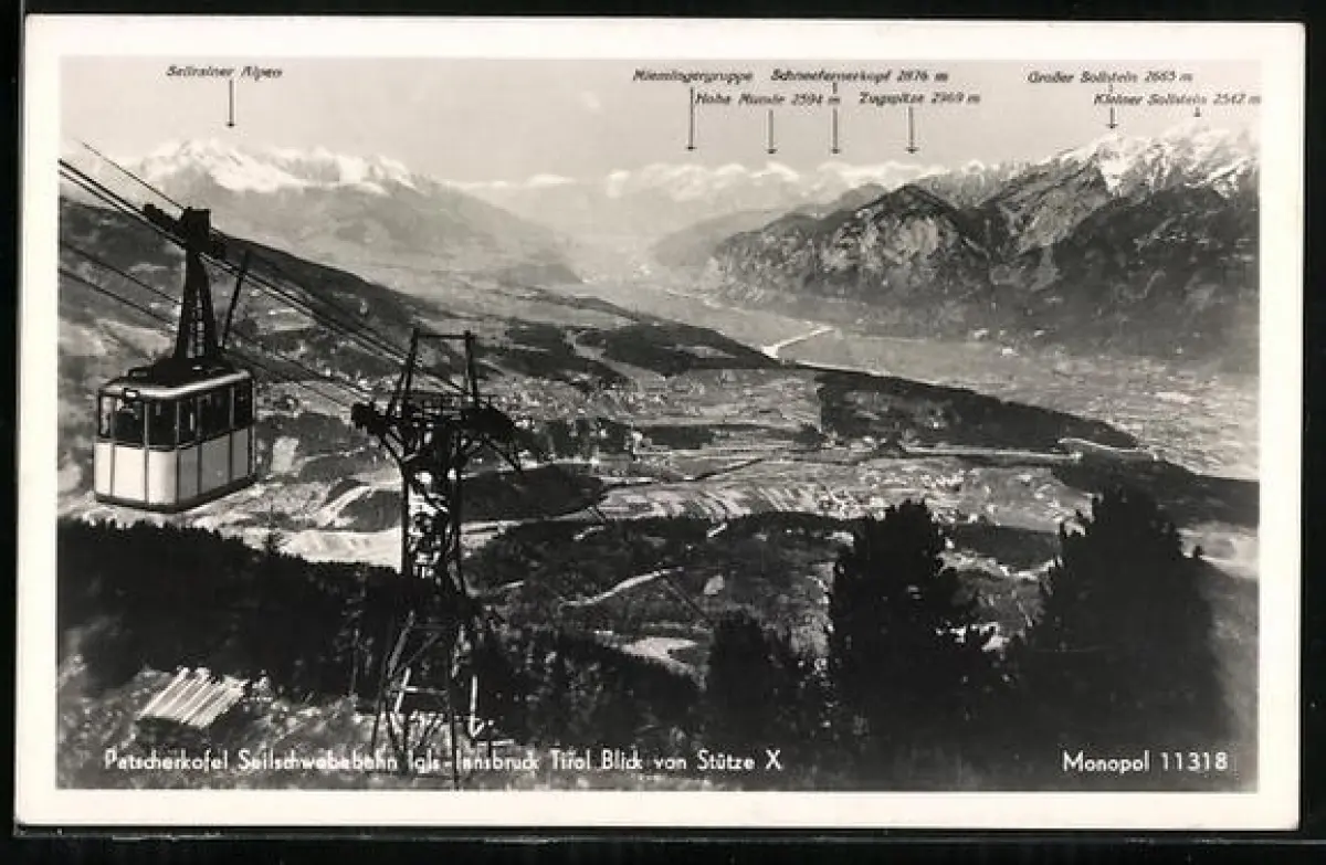 AK Igls-Innsbruck /Tirol, Patscherkofel Seilschwebebahn, Blick von Stütze auf Sellrainer Alpen und Schneefernerkopf