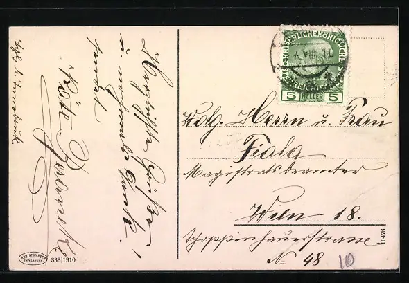 alte Ansichtskarte, gelaufen 1910, guter Zustand