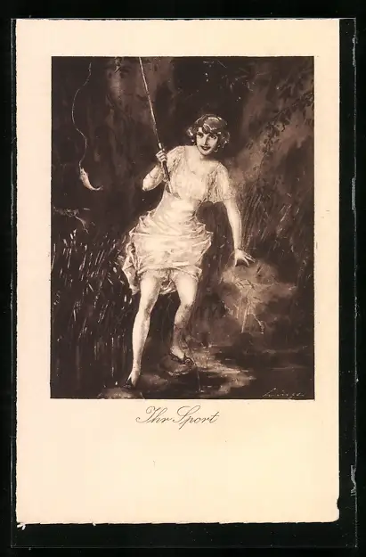 AK Ihr Sport, Anglerin mit Fisch an der Leine