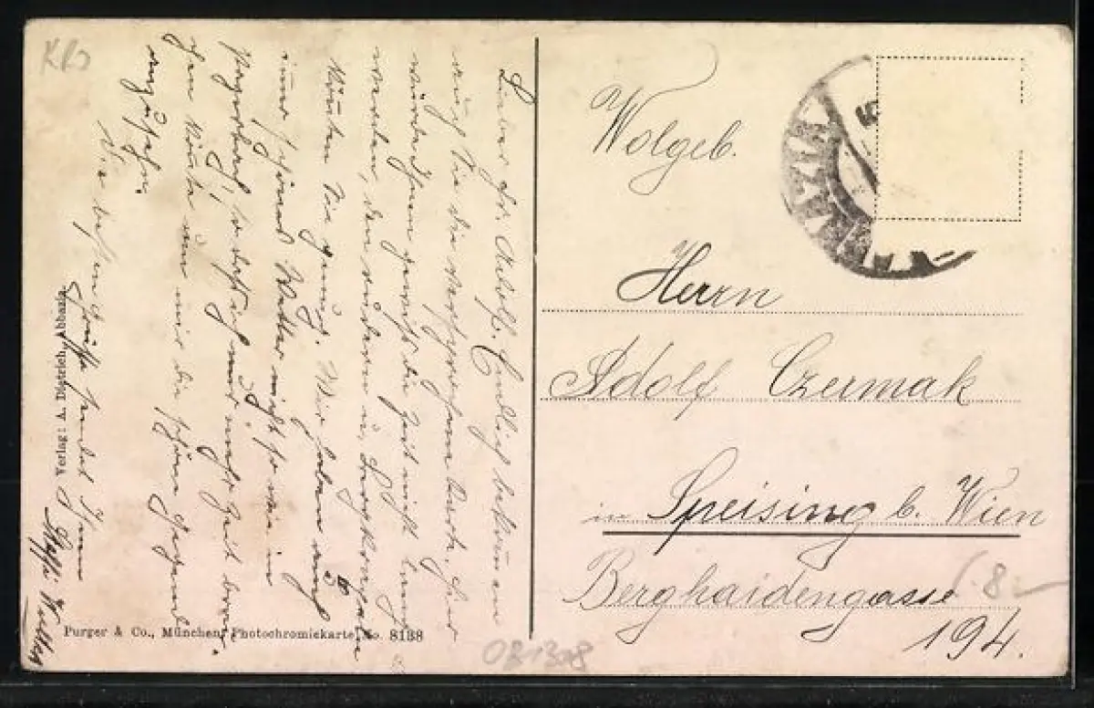 alte Ansichtskarte, gelaufen, Briefmarke entfernt, Stempelspur, guter Zustand