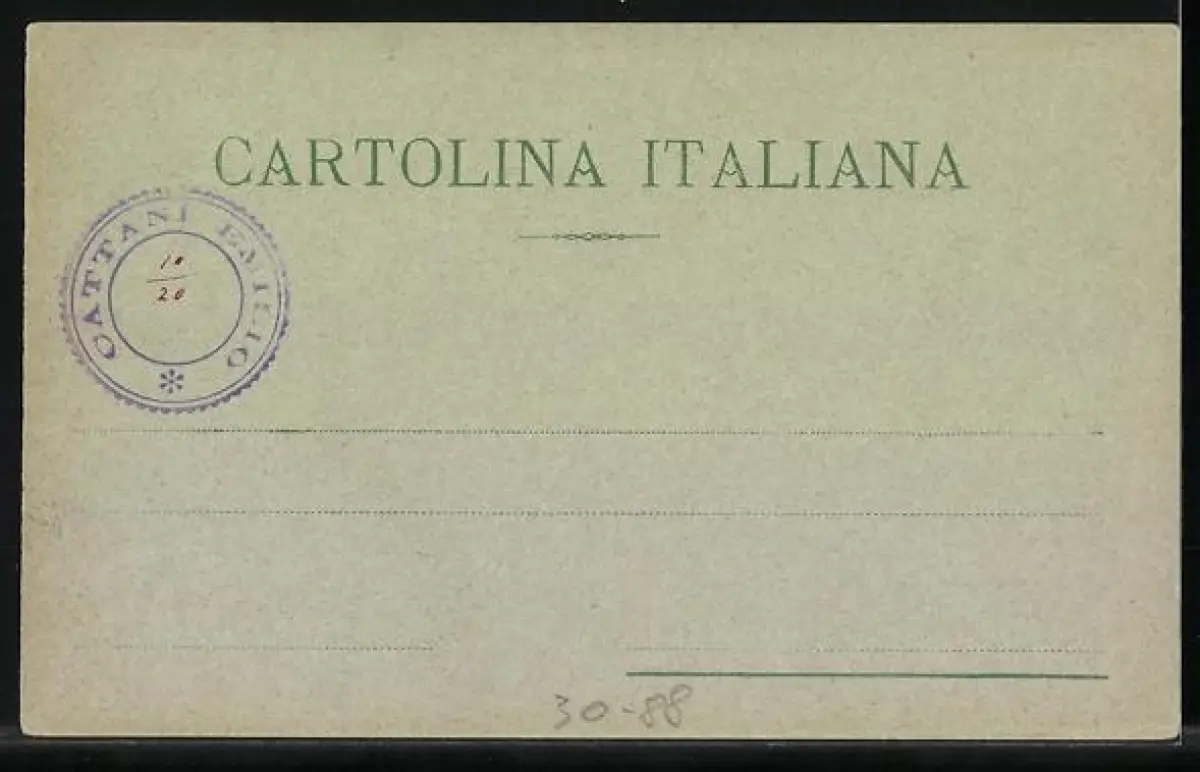 Personenbezogene Daten auf der Rückseite der Karte wurden durch blauen Textmarker unkenntlich gemacht. Die blauen Stellen sind auf die Vorderseite durchgeweicht und wirken sich negativ auf das Postkartenfoto aus
