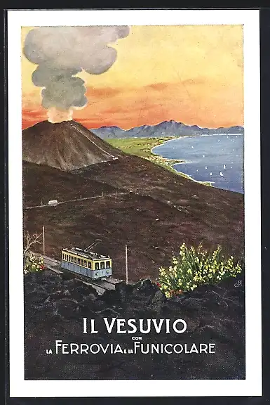 AK Il Vesuvio, La Ferrovia e la Funicolare, Panorama mit Bergbahn