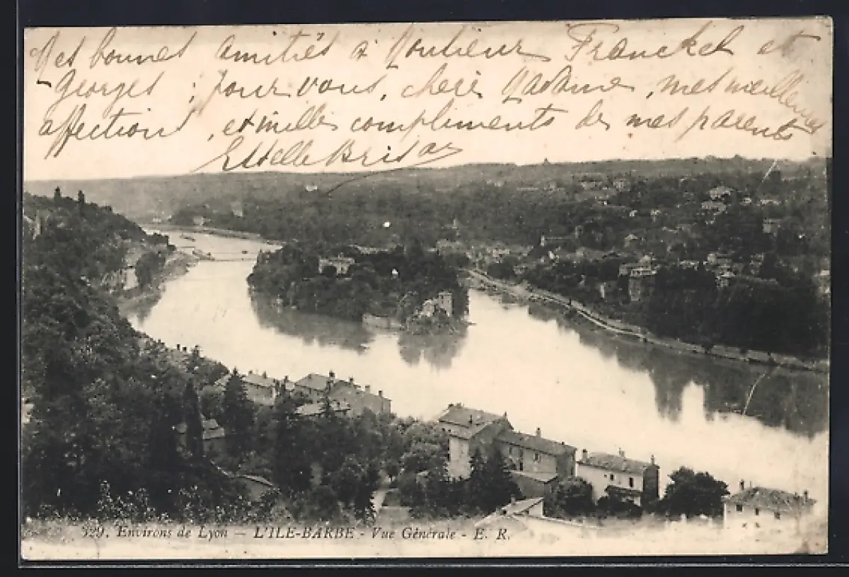 AK Île-Barbe, Vue générale de l`île et de la rivière environnante