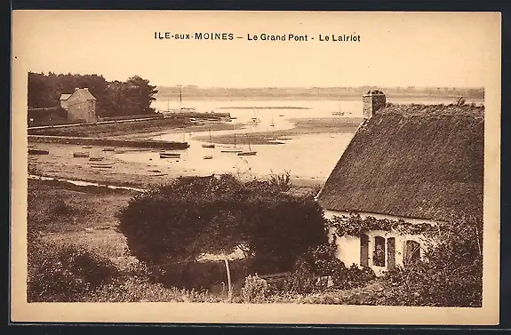 AK Île-aux-Moines, Le Grand Pont et Le Lairiot avec vue sur le rivage et les bateaux
