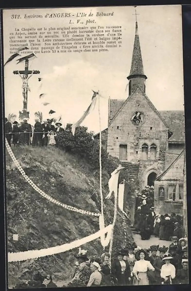 AK Île de Béhuard, La Chapelle et procession religieuse animée