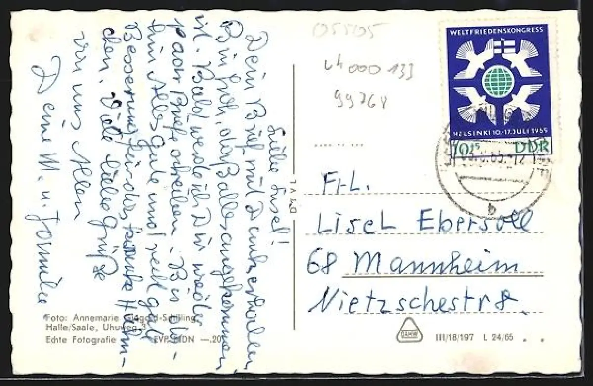 alte Ansichtskarte, gelaufen 1965, guter Zustand