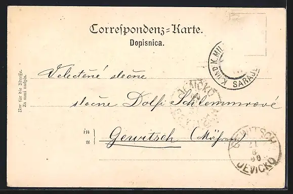 alte Ansichtskarte, gelaufen 1900, Briefmarke entfernt, rückseitig Oberflächenschaden, guter Zustand