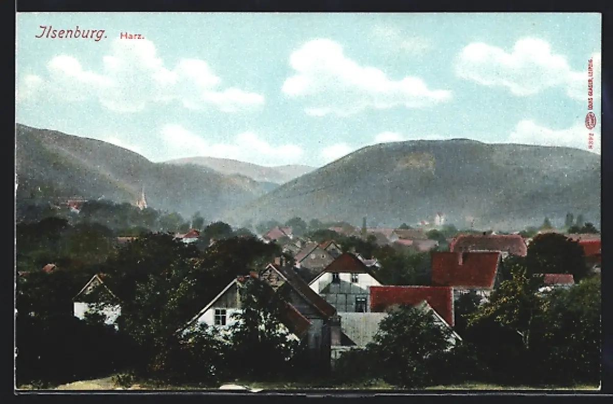 AK Ilsenburg /Harz, Ortsansicht mit Bergen
