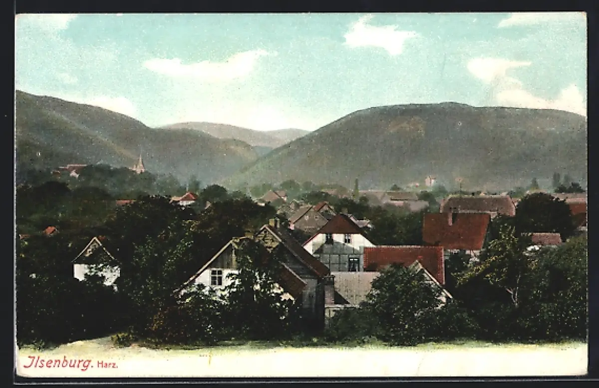 AK Ilsenburg /Harz, Ortspartie gegen die Berge
