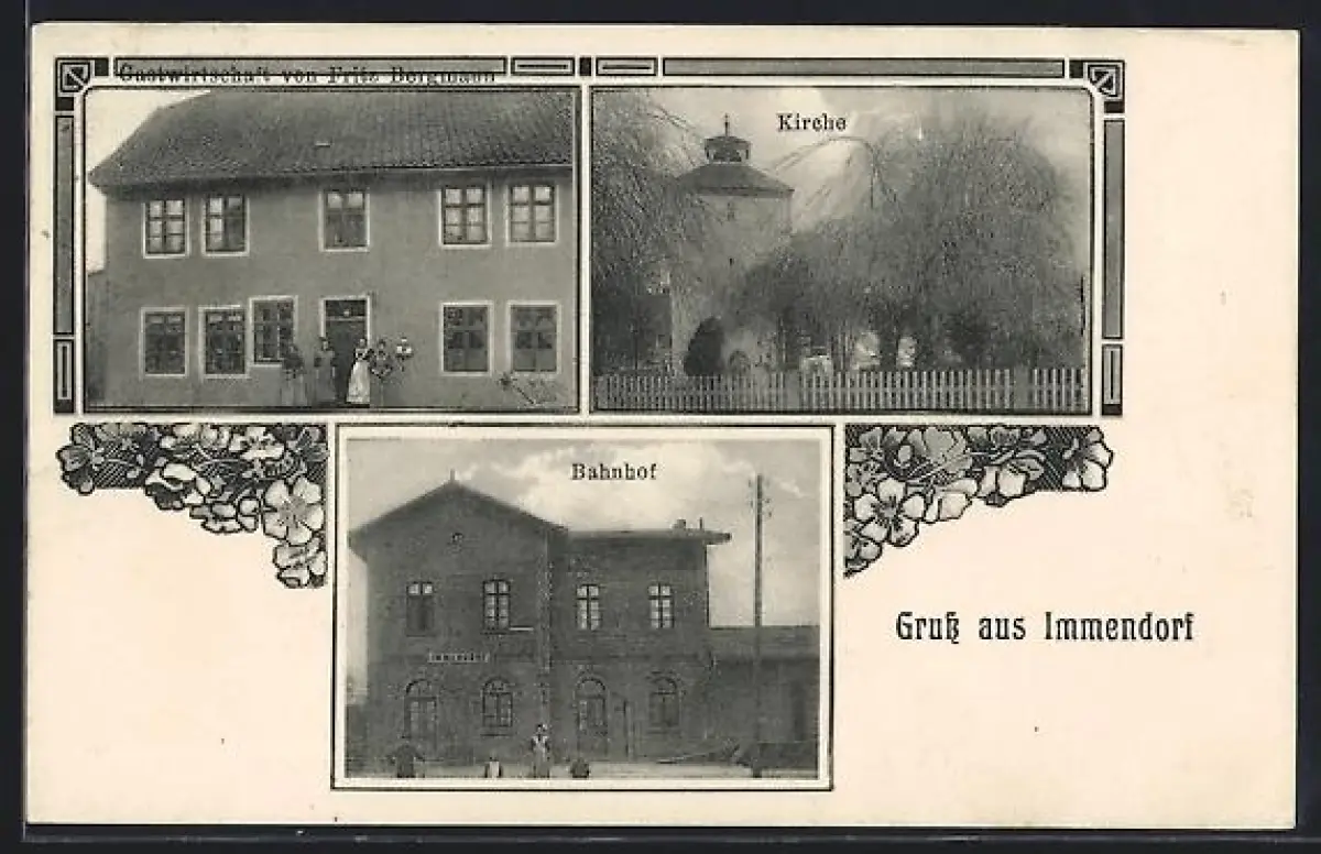 AK Immendorf / Braunschweig, Bahnhof, Gasthof v. Fritz Bergmann, Kirche