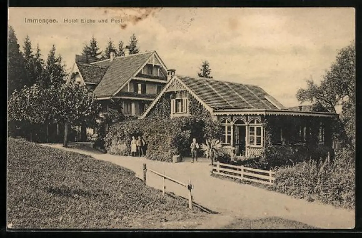AK Immensee, Hotel Eiche & Post, Ansicht mit Strasse