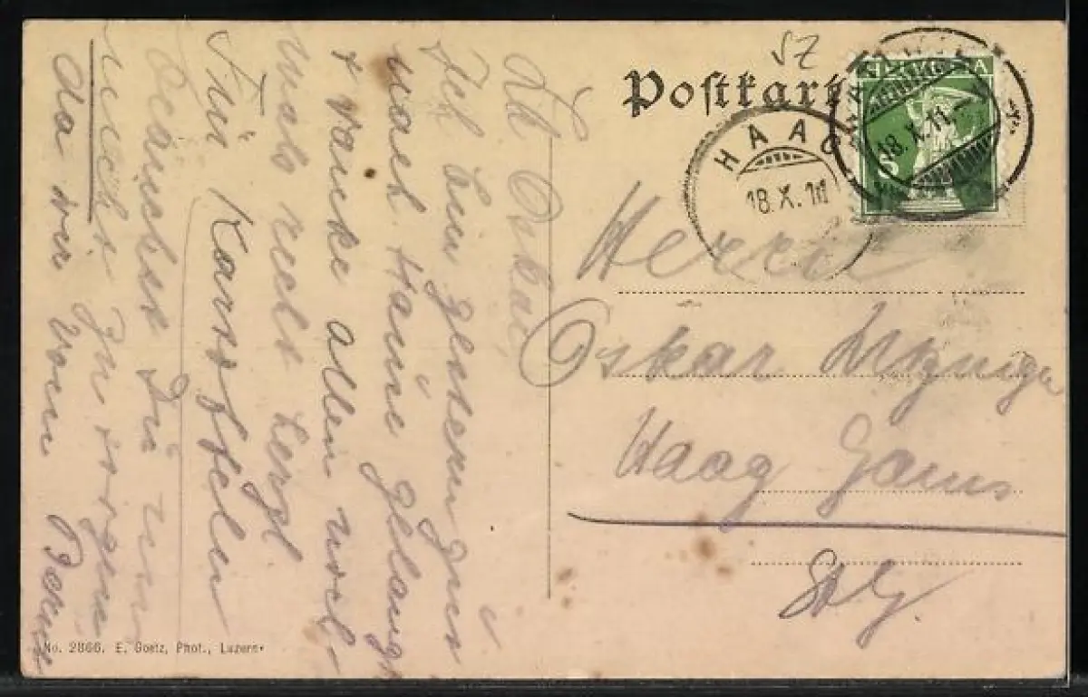 alte Ansichtskarte, gelaufen 1911, Abriebspur oben li., guter Zustand