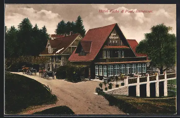 AK Immensee, Hotel Eiche & Post mit Strassenpartie