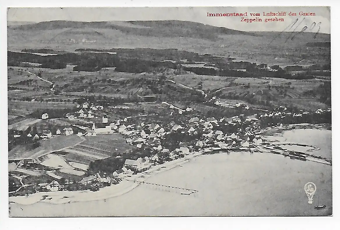 AK Immenstaad vom Luftschiff Zeppelin, Schiffspost Konstanz-Bregenz 1909