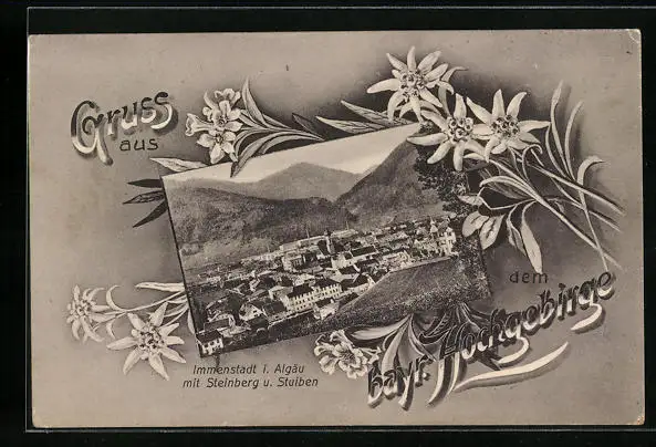 AK Immenstadt i. Allgäu, Ortsansicht mit Steinberg und Stuiben