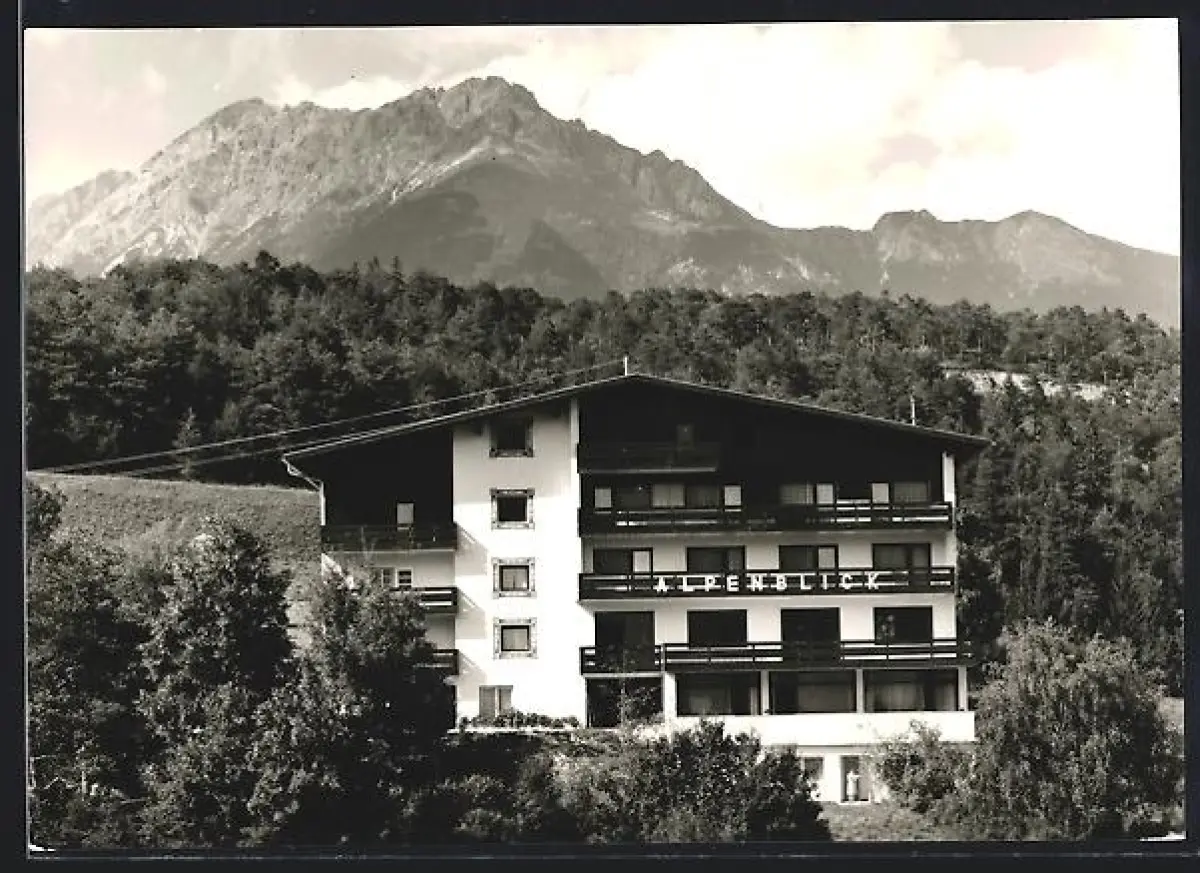 AK Imst-Gunglgrün, Gasthof-Pension Alpenblick mit Bergpanorama