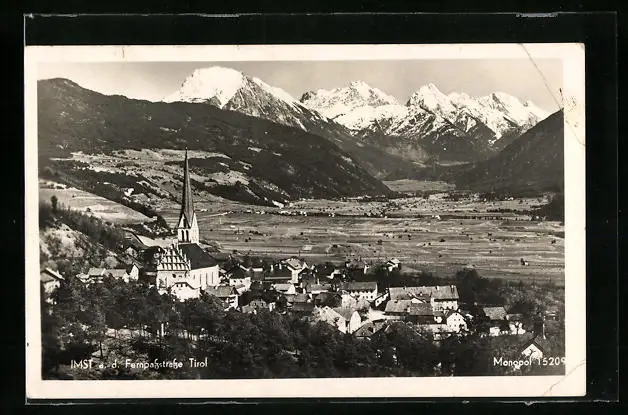 AK Imst, Ortsansicht mit Kapelle a. d. Fernpassstrasse