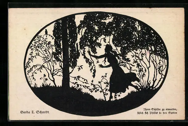 AK In Erwartung ihres Schäfers, Scherenschnitt