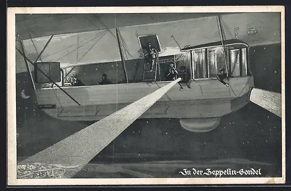 AK In der Zeppelingondel mit Scheinwerfern