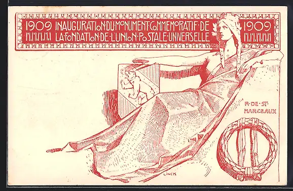 AK Inauguration du Monument commemoratif de 1909, Frau im langen Gewand, Wappen mit Bär, Kranz