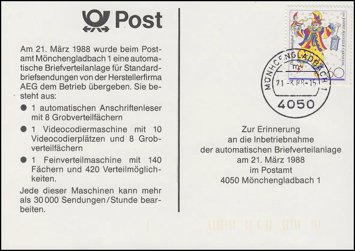 AK Inbetriebnahme der automatischen Briefverteilanlage MÖNCHENGLADBACH 21.3.1988