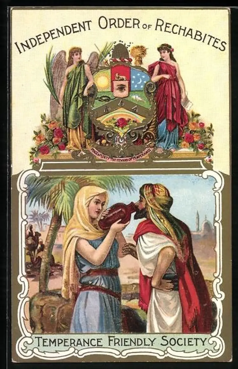 AK Independent Order of Rechabites, Frau gibt in Oase Mann zu trinken, Anti-Alkohol