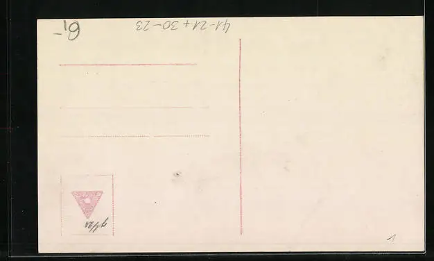 Personenbezogene Daten auf der Rückseite der Karte wurden durch blauen Textmarker unkenntlich gemacht. Die blauen Stellen sind auf die Vorderseite durchgeweicht und wirken sich negativ auf das Postkartenfoto aus