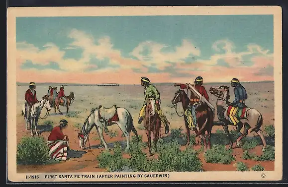 AK Indianer haben den ersten Santa Fe Zug erspäht