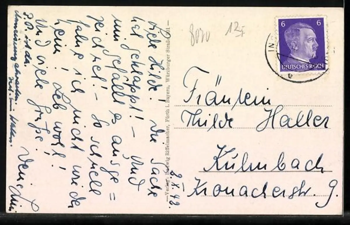 gelaufen 1942, Eckknick oben rechts, guter Zustand