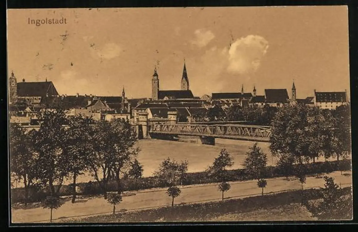 AK Ingolstadt, Panorama mit Kirche