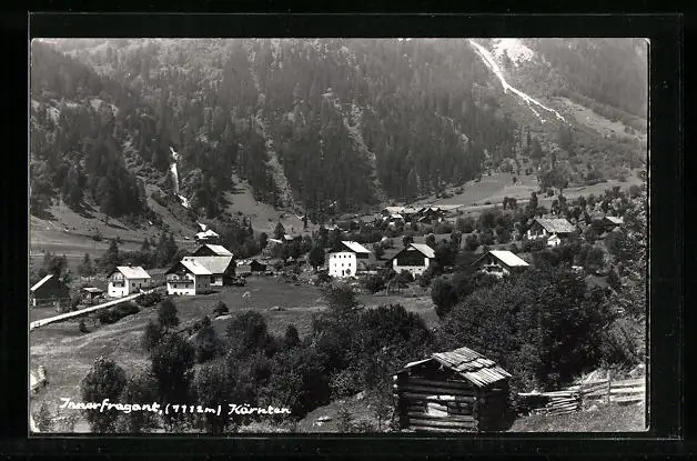 AK Innerfragant, Panorama mit Gebirgswand