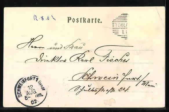 alte Ansichtskarte, gelaufen 1902, Briefmarke entfernt, Eckknicke oben, guter Zustand