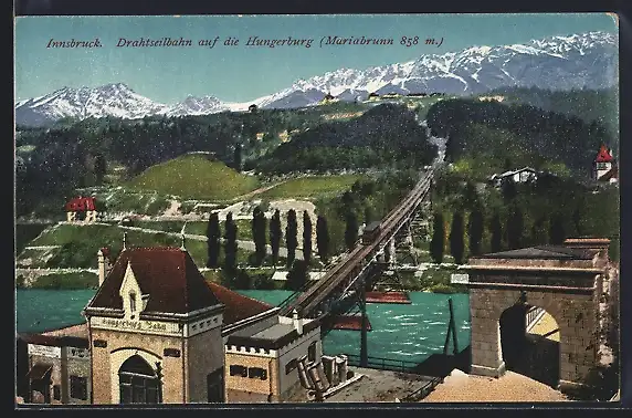 AK Innsbruck, Drahtseilbahn auf die Hungerburg Mariabrunn